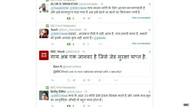 बीबीसी हिंदी ने मंगलवार को ट्विटर और फेसबुक पर लोगों से एक लाइन मांगी गाय पर.