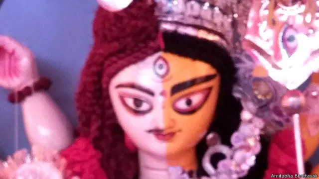 ट्रांसजेंडरों के बारे में माना जाता है कि उनमें पुरुष और स्त्री दोनों गुण होते हैं और ये ही भाव उन्होंने दुर्गा की मूर्ति में भी रखा है यानी कि दुर्गा की मूर्ति आधी दुर्गा है और आधे शिव.