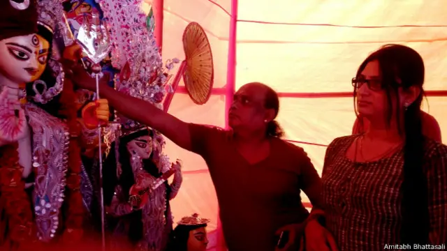 इस पूजा के मुख्य आयोजकों में से एक आलोक गोस्वामी कहते हैं, ‘‘हमारे लिए ये कोई अनोखी चीज़ नहीं है. भानु नस्कर ट्रांसजेंडर हैं जो स्थानीय निवासी हैं और 26 साल से हमारे पूजा समुदाय से जुड़े हैं. हमें कभी नहीं लगा वो हमसे अलग हैं.’’