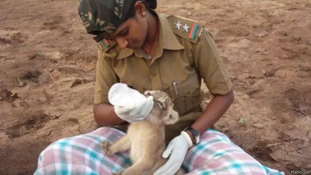 छह सालों से वन सुरक्षाकर्मी के रूप में काम करते हुए रतादीया कई बचाव कार्यों में शामिल रही हैं और राहत केंद्र पर शेरों की देखभाल की है.