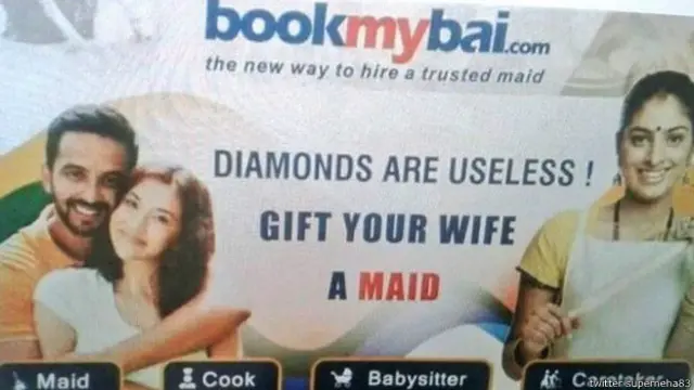 वहीं एक ट्वीट में कहा गया है, "नौकरानी (इंसान) अब सामान बन चुकी हैं. जबरदस्त सोच, @बुकमाईबाई जीनियस."
