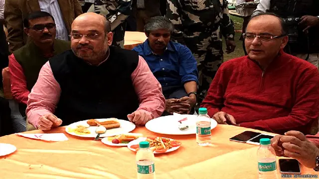 अरुण जेटली का गोलगप्पे और सलाद लेकर पत्रकारों के साथ संसद की कार्यवाही पर हंंसी-मज़ाक करना.
