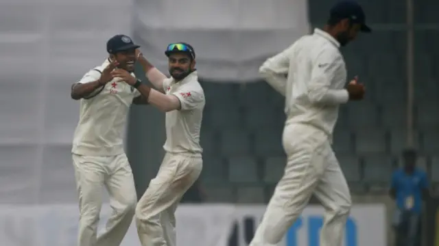 भारत ने मोहाली, नागपुर और दिल्ली टेस्ट में जीत दर्ज की, जबकि बंगलुरू में बारिश के कारण मैच पूरा नहीं हो सका था