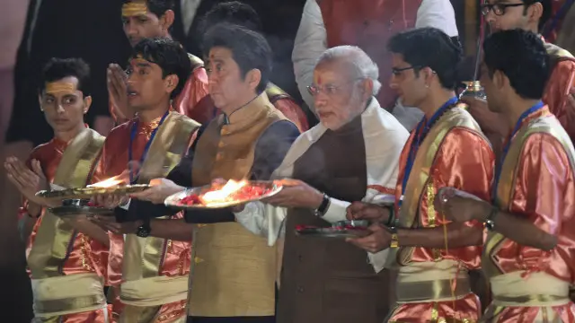 गंगा आरती में शामिल हुए मोदी और आबे