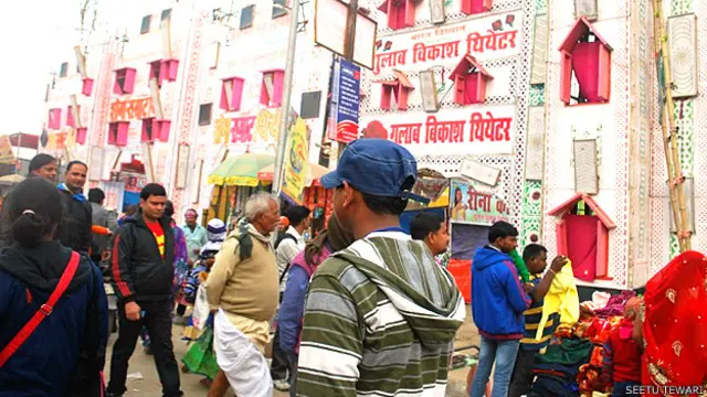 दिलचस्प है कि थिएटर की शुरूआत और अंत दोनों ही भगवान के भजन से होता है. शाम के छह बजते-बजते मेले में लगे ग्यारह थिएटरों से भोजपुरी गीतों की आवाज़ माहौल में अजीब घालमेल पैदा करना शुरू कर देती है. ये लड़कियां 6 बजे से ही स्टेज पर खड़ी हो जाती हैं और रात बारह बजे तक समूह में नाचती रहती हैं.