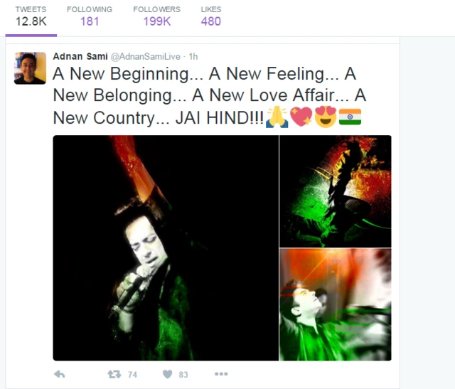 इसके बाद अदनान सामी ने ट्वीट कर कहा, ''एक नई शुरुआत, एक नया अहसास, एक नया जुड़ाव, एक नया प्यार, एक नया देश, जय हिंद.!!!''