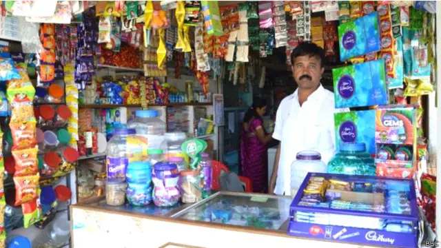आनंद तालेकर गांव के बस स्टॉप पर एक दुकान चलाते हैं. यह दुकान आसपास के 5000 लोगों की पहुंच में है. लेकिन फिर भी वो वॉशिंग पावडर, शैम्पू, बेबी डाइपर, बिस्कुट और बालों को रंगने का डाई भी बहुत ज़्यादा नहीं बेच पाए हैं.