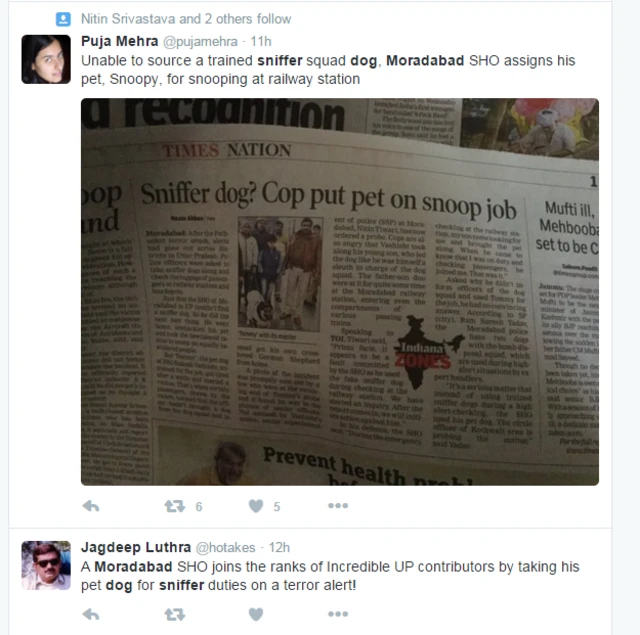 मुरादाबाद में पुलिस के एक कोतवाल को जब प्रशिक्षित स्निफ़र डॉग नहीं मिला, तो वह अपने पालतू कुत्ते को ही ‘स्निफ़र डॉग’ बनाकर चेकिंग के लिए निकल पड़े. रेलवे स्टेशन पर उसे घुमाने के बाद कोतवाल साहब ने मुसाफ़िरों से लेकर ट्रेन तक चेक कर डाली.