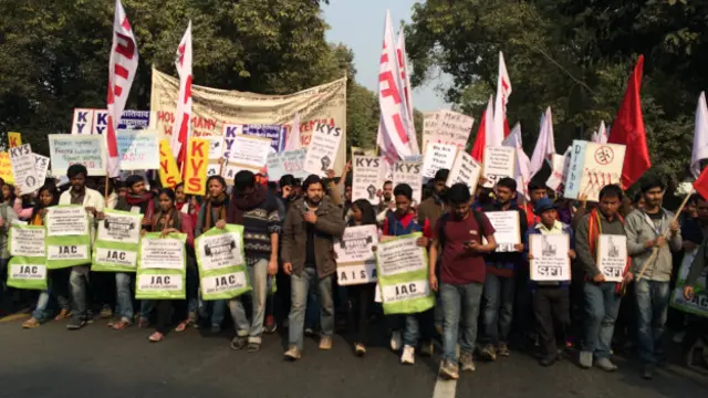 साथ ही पिछले महीनों में नॉन-नेट फ़ेलोशिप के मुद्दे को उठानेवाले 'ऑक्यूपाई यूजीसी' और महिलाओं की सुरक्षा और रहने की जगहों से जुड़ी परेशानियों को सामने रखनेवाले संगठन 'पिजरा तोड़' के छात्र भी इसमें जुड़े हैं.