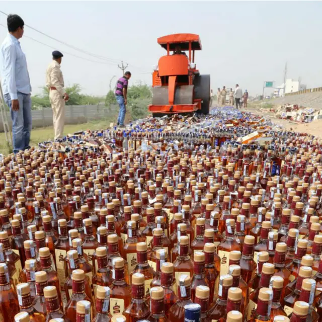 अंदाज़ा लगाया जा सकता है कि गुजरात में कितनी मात्रा में अवैध शराब आती होगी. नशाबंदी विभाग के एक अधिकारी ने बताया कि अवैध शराब पकड़े जाने के बाद कोर्ट के आदेश अनुसार 'हम मजिस्ट्रेट की मौजूदगी में अवैध शराब को नष्ट कर देते हैं. खुली सड़क पर शराब को रखकर उस पर रोड रोलर घुमाया जाता है'.
