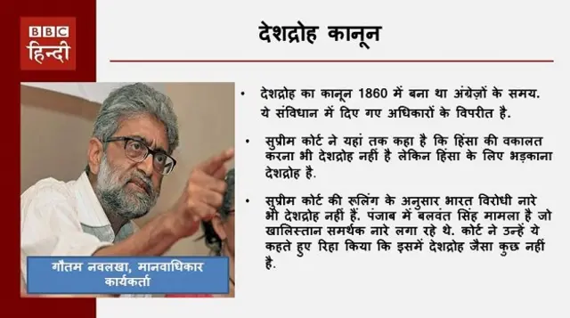मानवाधिकार कार्यकर्ता गौतम नवलखा नवलखा का मानना है कि हिंसा की वकालत करना नहीं बल्कि उसे भड़काना देशद्रोह है.