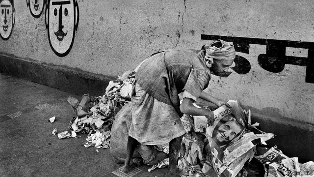 1977 में इंदिरा गाँधी की हार को भी रघु राय ने एक सांकेतिक चित्र में कैद किया है जिसमें एक कूड़ा उठाने वाला इंदिरा गाँधी के फटे हुए पोस्टर को उठा रहा है और उसके सामने वाली दीवार पर परिवार नियोजन का नारा लिखा हुआ है जिसकी वजह से इंदिरा गांधी की हार हुई थी. रघु ने ये तस्वीर चुनाव ख़त्म होने वाले दिन खीची थी.