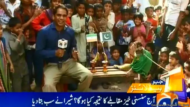 इसी के साथ एक बंदर को दिखाया गया, जिसका नाम शेरा बताया गया है. इसके मुताबिक़ इस बंदर ने भविष्यवाणी की है कि पाकिस्तान टीम मैच जीतेगी और इसके बाद मुस्कराते हुए चैनल के एंकरों ने कहा, ''तनाव में आने की कोई ज़रूरत नहीं है.''