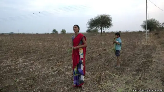 वर्धा ज़िले में तीन एकड़ ज़मीन पर सोयाबीन और कपास की फ़सल बर्बाद होने के बाद मांधा अलोन के पति शरद ने ऑटोरिक्शा ख़रीदने के लिए क़र्ज़ लिया जबकि उन्होंने ख़ुद बंजर पड़ी ज़मीन पर मेहनत की.