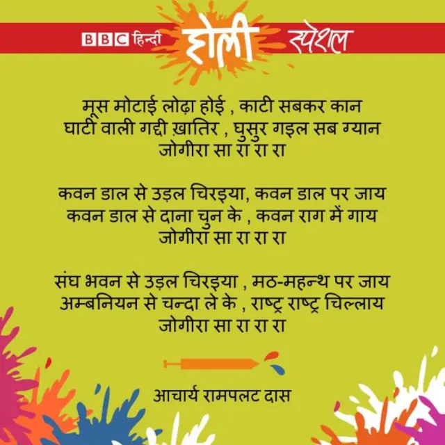 आचार्य रामपलट दास जनकवि हैं. उनके लिखे जोगीरे हम आपको होली के मौके पर पेश कर रहे हैं.