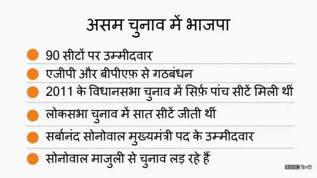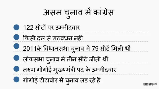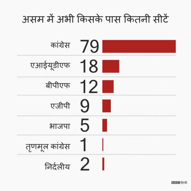 फ़िलहाल असम में कांग्रेस की सरकार है और पिछले चुनावों में उसे 79 सीटें मिली थीं. बीजेपी को पिछली बार केवल 5 सीटों पर जीत मिली थी.