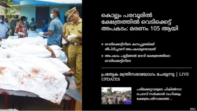 स्थानीय मलयालम दैनिक 'दीपिका' ने लिखा, "पारावुर में गंभीर हादसा. पटाखा घर कसाईघर में तब्दील हो गया."