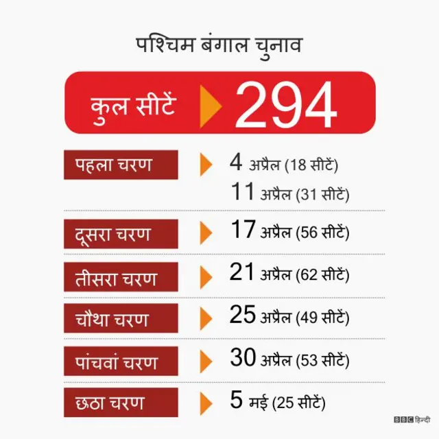 पश्चिम बंगाल में कुल 294 सीटों पर छह चरणों में चुनाव हो रहे हैं.