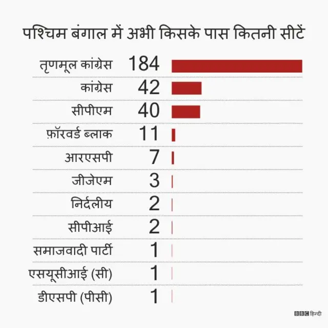 पश्चिम बंगाल की मौजूदा विधानसभा में तृणमूल कांग्रेस के पास 184 सीटें हैं.