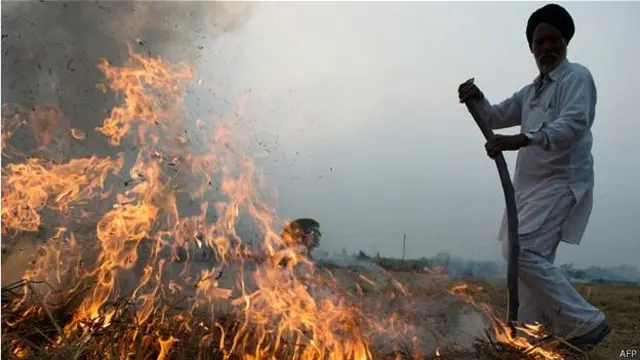धान के पुआल में सिलिका ज़्यादा होता है, जिसे जानवर खाना पसंद नहीं करते. प्रतिबंध के बावजूद पूरे क्षेत्र में खेतों में अलाव जलाए जाते हैं. इसे अमरीकी अंतरिक्ष एजेंसी नासा के नक्शे में रेड स्पॉट के रूप में देखा जा सकता है.