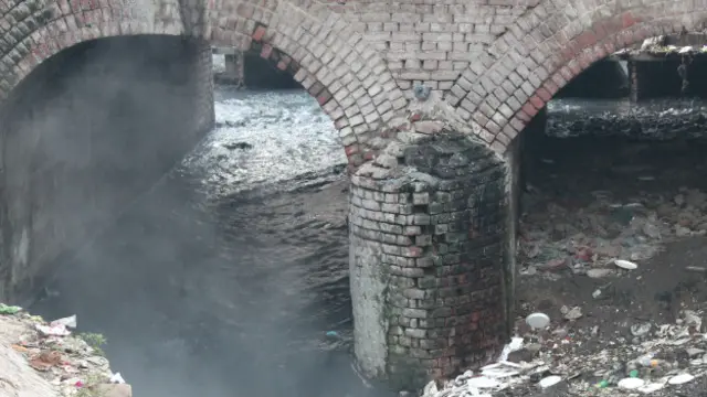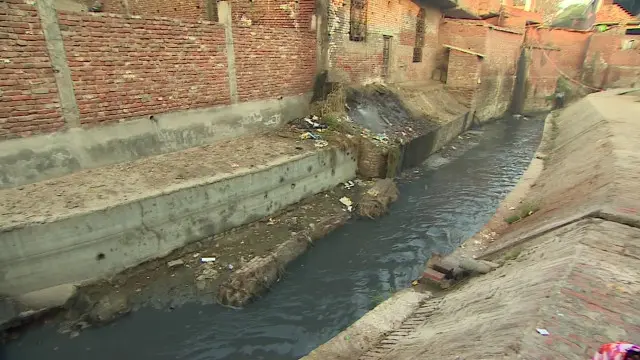 उन्होंने गली के दूसरे सिरे पर एक नाला दिखाया. वे मेरी ओर कुछ कहने के लिए मुड़े. मैंने देखा कि उन्होंने अपने नाक पर रूमाल रखा हुआ है और मुझे नाले से बहता काला पानी दिखा रहे हैं.
