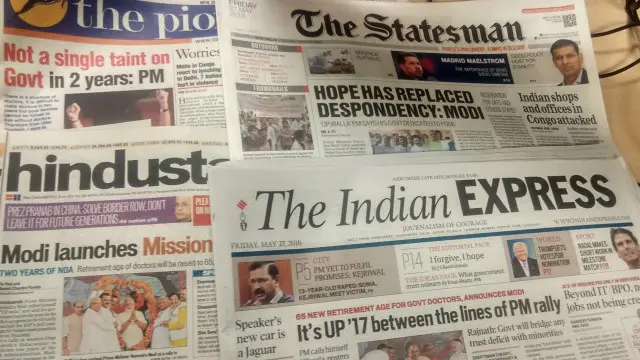आज के अख़बारों में प्रधानमंत्री मोदी के दो साल और इस मौक़े पर उत्तर प्रदेश के सहारनपुर में उनकी रैली की हर तरफ़ चर्चा है.