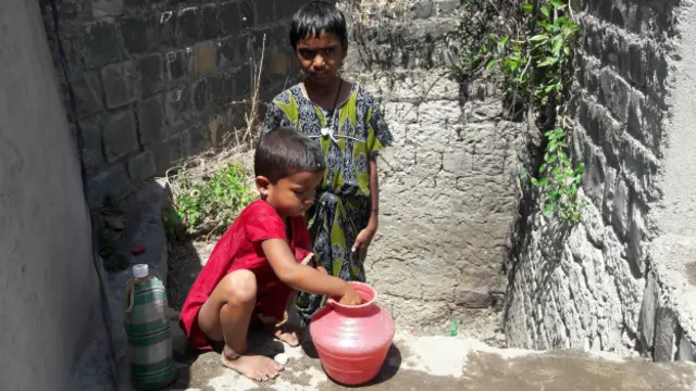 दोपहर का वक़्त है. हमने पाया कि सारोला से उस्मानाबाद की सड़क पर 13 साल के अभिजीत जुम्बाडे अपनी 12 साल की बहन अंजलि के साथ साइकिलों पर प्लास्टिक के हंडे टांगकर तेज़ी से जा रहे हैं. नल में पानी नहीं है और टैंकर भी नहीं आया. इसलिए कुएं से पानी लाना ज़रूरी हो गया है.