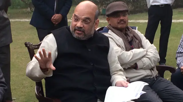 मीडिया के सवालों के लिए उस दिन मंच पर कमान संभाली अमित शाह ने. सफ़ेद कुर्ते पर बैगनी नेहरू जैकेट पहने अमित शाह मंच पर बैठे थे. चेहरे पर जानी पहचानी हल्की दाढ़ी. सामने पत्रकारों का जमावड़ा और मैं उन्हें दफ़्तर में टीवी पर देख रहा था.