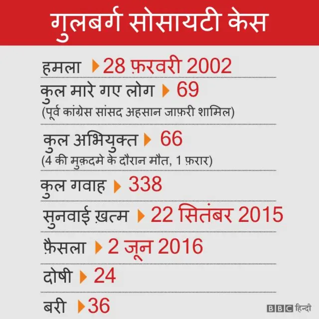 अहमदाबाद के गुलबर्ग हाउसिंग सोसाइटी में घुसकर 28 फ़रवरी 2002 को एक उत्तेजित भीड़ ने 69 लोगों की हत्या कर दी थी. मृतकों में कांग्रेस के पूर्व सांसद एहसान जाफरी भी शामिल थे.
