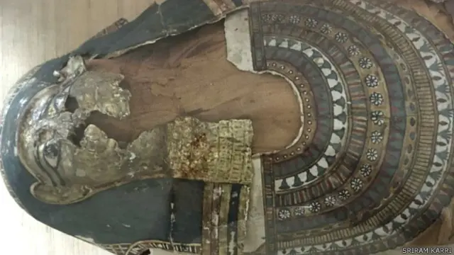 इस बीच, ममी की ऊपरी परत में दरारें आने लगीं और ये टूटने लगी. ममी के चेहरे, कंधे, छाती और पैरों की परतें निकलने लगीं.