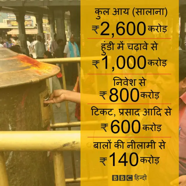 श्रद्धालु मंदिर के दान पात्र में अरबों डॉलर की नकदी और ज़ेवरात डालते हैं जिसमें सोना प्रमुखता से होता है.