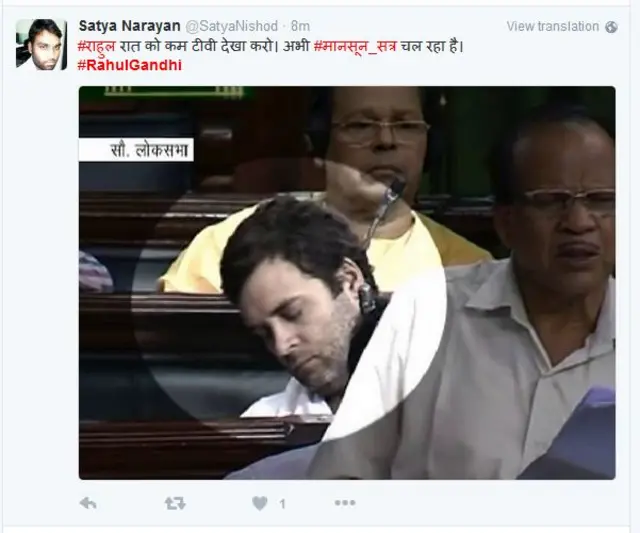 सत्य नारायण ने लिखा है- राहुल रात को कम टीवी देखा करो, अभी मॉनसून सत्र चल रहा है.