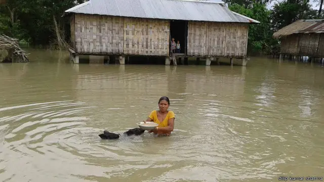 असम के अधिकतर इलाक़े भीषण बाढ़ की चपेट में हैं. भूटान और सीमावर्ती राज्य अरूणाचल प्रदेश में लगातार हो रही बारिश के कारण प्रदेश में बाढ़ का पानी बढ़ता जा रहा है और हालात लगातार ख़राब हो रहें है.