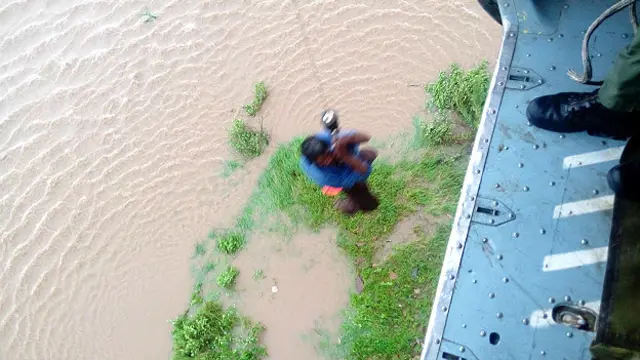 सेना और एनडीआरएफ़ (राष्ट्रीय आपदा प्रतिक्रिया बल) की मदद से लोगों को सुरक्षित स्थानों पर पहुँचाया जा रहा है.