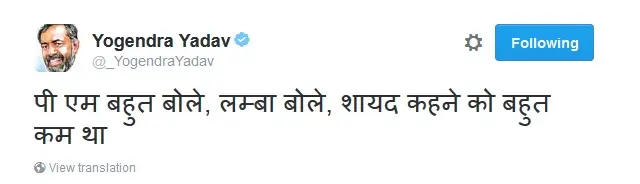 वहीं जल्द अपनी पार्टी के साथ सियासी मैदान में उतरने वाले योगेंद् यादव ने इसे मोदी का सबसे कमजोर भाषण कहा.