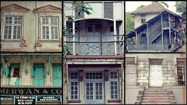 दक्षिणी मुंबई में मौजूद एक टूटी हुई इमारत की इस दीवार में मुंबई आनेवाले अंग्रेज़ी, पुर्तगाली और ईरानी सभ्यताओं की मिली जुली झलक है.