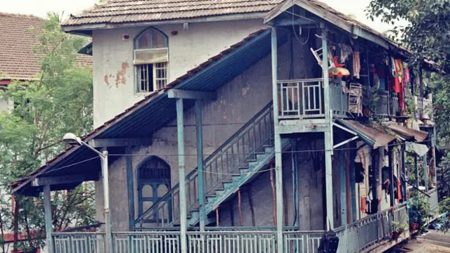मुंबई की एक चाल, यह प्रचलित घर हैं और चाल में मौजूद हर कमरे में एक अलग परिवार किराए पर रहता है.