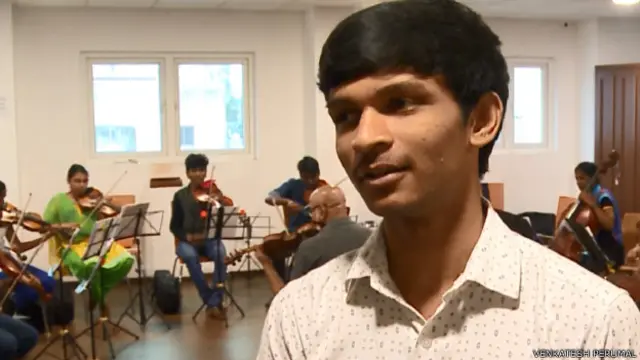 ऑर्केस्ट्रा में संगीत सीख रहे एन बालाजी एक धोबी के लड़के हैं और एक छोटे से कमरे में अपने परिवार के साथ रहते हैं.