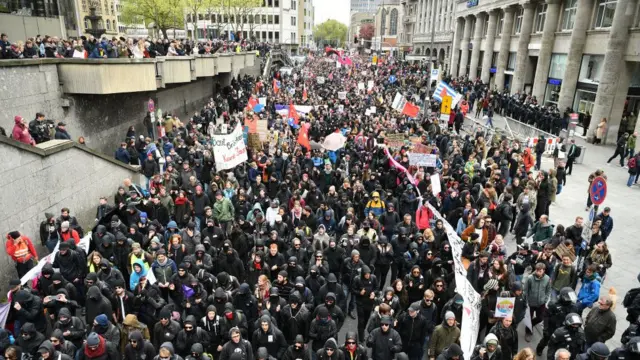 जर्मन अख़बारों में छपी ख़बर के मुताबिक़, लेफ़्ट समर्थक करीब दस हज़ार प्रदर्शनकारी कोलोन शहर में हैं. शहर की ज्यादाकर दुकानों को बंद कराया गया है.