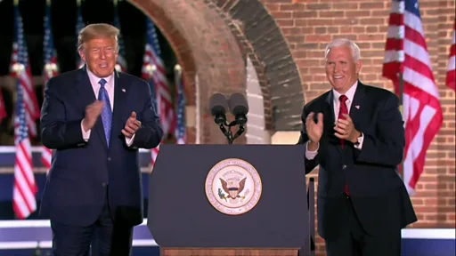कोरोना वायरस महामारी के बावजूद ट्रंप ने 1,000 से ज़्यादा लोगों के सामने अपना भाषण दिया. उनके सामने दर्जनों अमरीका झंडे लहरा रहे थे और नारे लगाए जा रहे थे - "चार साल और!" और "यू.एस.ए!"
