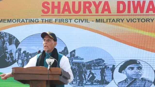 राजनाथ सिंह 27 अक्टूबर को भारत प्रशासित कश्मीर में 'शौर्य दिवस' के अवसर पर सेना के ज़रिए आयोजित एक कार्यक्रम में मुख्य अतिथि थे.