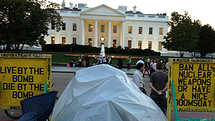 डैरेल शान्ति के पक्ष और युद्ध के विरोध लड़ने वाली एक संस्था के लोगों से जुड़े हैं. वो पिछले 32 सालों से व्हाइट हाउस के सामने धरना दे रहे हैं.