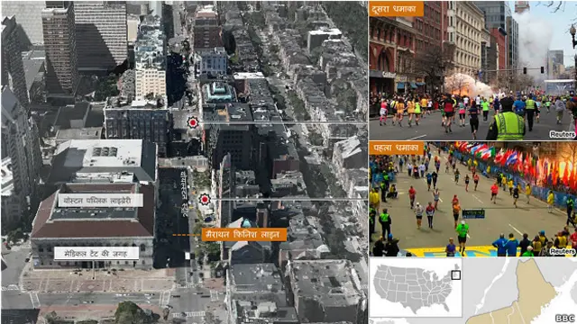 धमाके के बाद कुछ देर तक <link type="page"><caption> अफ़रा तफ़री का</caption><url href="http://www.bbc.co.uk/hindi/international/2013/04/130416_us_boston_eyewitness_fma.shtml" platform="highweb"/></link> माहौल रहा लेकिन बाद में पुलिस और वहां मौजूद लोग घायलों और दूसरों की मदद के लिए आगे आए.