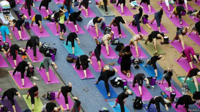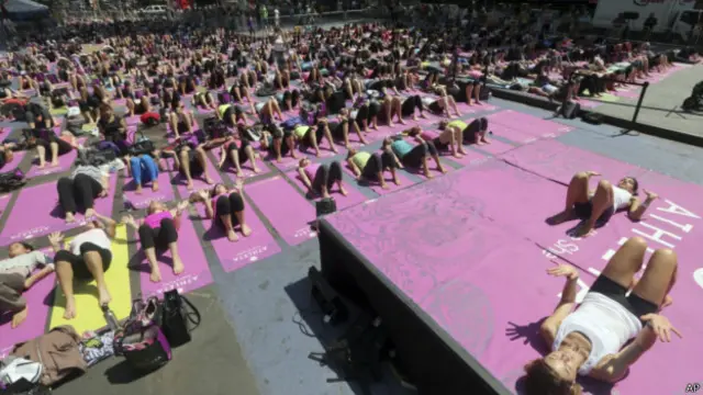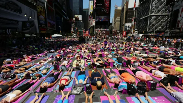 मैनहैटन चौराहे पर लगे विशाल बिलबोर्ड्स के नीचे लोग अपनी-अपनी दरियां बिछाकर <link type="page"><caption> योगासन</caption><url href="http://www.bbc.co.uk/hindi/business/2010/08/100828_yoga_patent_ap.shtml" platform="highweb"/></link> कर रहे थे.