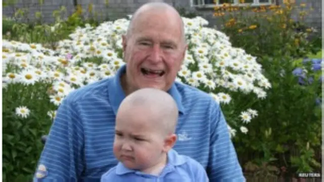 ल्यूकीमिया से पीड़ित एक बच्चे के प्रति समर्थन दिखाने के लिए अमरीका के पूर्व राष्ट्रपति जॉर्ज एच डब्ल्यू बुश ने सिर के बाल कटा दिए हैं.