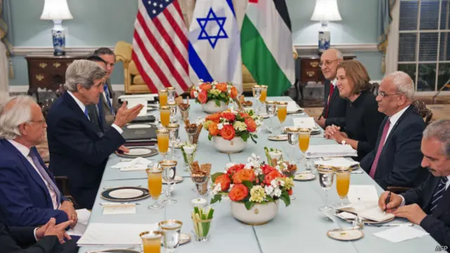 दोनों पक्षों के वार्ताकारों ने वाशिंगटन में अमरीकी विदेश मंत्री जॉन केरी के साथ इफ़्तार पार्टी में हिस्सा लिया और इसके साथ ही तीन साल से बंद पड़ी मध्य पू्र्व शांति वार्ता की औपचारिक शुरुआत हो गई.