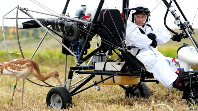 इसके अलावा भी पुतिन की बैकाल झील में गोता लगाते, समुद्र के भीतर बेलुगा व्हेल पर रेडियो ट्रांसमीटर लगाते और हेलमेट और काला चश्मा पहने सारसों के साथ मोटरयुक्त <link type="page"><caption> हैंग ग्लाइडर उड़ाते</caption><url href="http://www.bbc.co.uk/hindi/multimedia/2012/09/120906_putin_flies_gallery_psa.shtml" platform="highweb"/></link> तस्वीरें देखी जा सकती है.