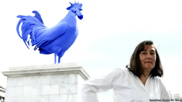 लंदन के ट्रेफ़ेलगर स्क्वैयर में पिछले दिनों एक नई मूर्ति का अनावरण किया गया. ये मूर्ति है नीले रंग के विशालकाय मुर्गे की जो चौराहे के फोर्थ प्लिंथ या चौथे खंभे पर रखी गई है. ये जर्मन कलाकार कैथरीना फ्रिच ने बनाई है और इसका नाम है हान कॉक. ये पब्लिक आर्ट या सार्वजनिक स्थानों पर प्रर्दशित कला का एक नमूना है.