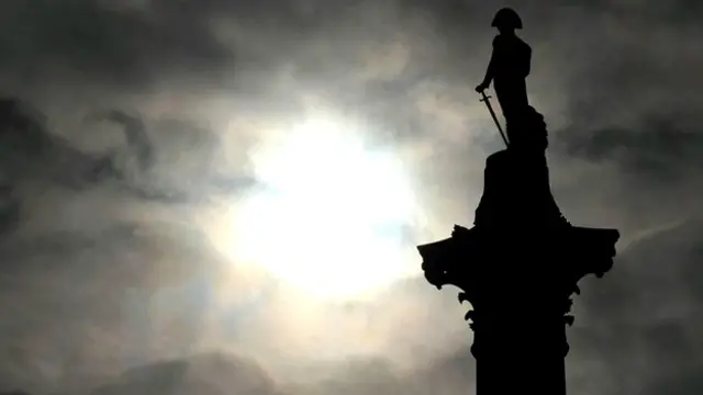 मध्य लंदन में स्थित ट्रेफ़ेलगर स्क्वैयर ब्रितानी नौसेना कमांडर नेल्सन होराशियो की साल 1805 में फ्रांस पर जीत के सम्मान में बनाया गया था. ये मूर्ति नेल्सन की है.