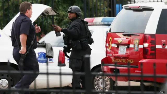 वॉशिंगटन पुलिस चीफ़ कैथी लेनियर ने मीडिया को बताया कि एक बंदूक़धारी आधी बांह वाली सेना की यूनीफ़ॉर्म में बेरेट हैट लगाए था और उसे आख़िरी बार सुबह 8 बजकर 35 मिनट पर हैंडगन के साथ देखा गया था.